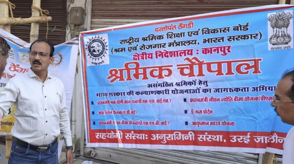 उरई । दतोपंत ठेंगड़ी राष्ट्रीय श्रमिक शिक्षा व विकास बोर्ड , श्रम एवं रोजगार मंत्रालय भारत सरकार के क्षेत्रीय निदेशालय कानपुर द्वारा अनुरागिनी संस्था के सहयोग से राठ रोड एवम् कालपी बस स्टॉप उरई में दैनिक मजदूरों के बीच आज श्रमिक चौपाल का आयोजन किया गया ।