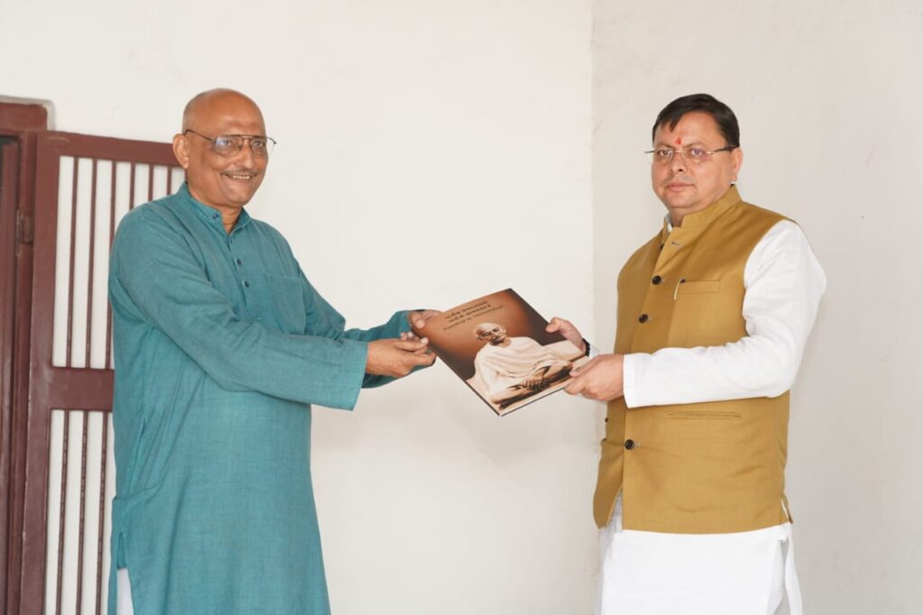 मुख्यमंत्री धामी अहमदाबाद में पहुँचे गांधी आश्रम, चलाया चरखा, राष्ट्रपिता को किया याद