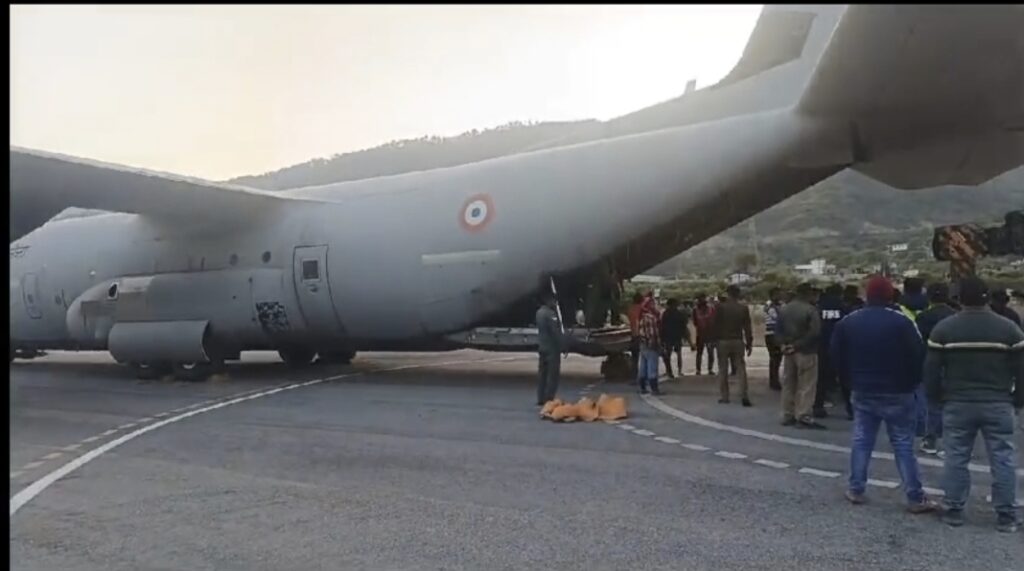 रेस्क्यू अभियान के संदर्भ मे प्राप्त विवरण के अनुसार सिलक्यारा मे टनल मे फंसे 40 श्रमिकों के बचाव हेतु आज 25 टन भारी मशीन लेकर चिन्यालीसौण की हवाई पट्टी पर एयरफोर्स के तीन विशेष विमान पहुचे। भारी ड्रिलिंग मशीन के तीनो पार्ट टनल के भीतर पहुचाए जा चुके हैं, तीनों पार्ट को असेम्बलिंग का कार्य जारी है। यह मशीन मलबे को भेद कर स्टील पाइप दूसरी तरफ पहुंचने में मददगार साबित होगी।इस मशीन के जरिए प्रति घंटे 5 मीटर मलबा निकला जा सकेगा।