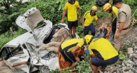 देहरादून। ऋषिकेश-बदरीनाथ मोटर मार्ग पर नीर गड्ड के पास एक कार खाई में जा गिरी। इस हादसे में 3 लोगों की मौके पर ही मौत हो गई, जबकि 3 लोग घायल हो गए। घायलों को उपचार के लिए राजकीय चिकित्सालय ऋषिकेश में भर्ती कराया गया है। प्राप्त जानकारी के अनुसार यह हादसा शुक्रवार सुबह को हुआ। कार ऋषिकेश की ओर आ रही थी। नीर गुड्डी के पास कार अचानक अनियंत्रित होकर गहरी खाई में जा गिरी। लोगों ने इसकी सूचना पुलिस को दी। सूूचना पर पुलिस व एसडीआरएफ की टीमें मौके पर पहुंची और खाई में गिरे लोगों को रेस्क्यू कर निकाला। कार में छह लोग सवार थे। दुर्घटना में तीन लोगों की मौके पर ही मौत हो गई, जबकि तीन गंभीर रूप से घायल हो गए।
