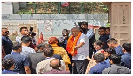 Uttarakhand News: उपराष्ट्रपति जगदीप धनखड़ ने बृहस्पतिवार को भवाली स्थित कैंची धाम पहुंचकर बाबा नीब करौरी महाराज के दर्शन कर पूजा अर्चना की। स्थानीय युवतियों में मीरा तिवारी और भावना तिवारी का तिलक चंदन लगाकर स्वागत किया।
