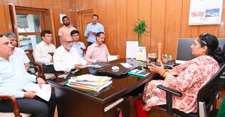 देहरादून। अध्यक्ष विधानसभा उत्तराखण्ड ऋतु खण्डूडी भूषण ने यमुना कालोनी स्थित  शासकीय आवास आर-1 पर लोक निर्माण विभाग के अधिकारियों के साथ आगामी मानसुन को ध्यान में रखते हुए, विभागीय समीक्षा बैठक की। बैठक में खो नदी पर बन रही आर० सी०सी० सुरक्षा दीवार, सिद्धबली सेतु, व गाड़ीघाट पुल का सुरक्षात्मक कार्य व रिवर ट्रेंचिंग निर्माण कार्य को सावधानी से करने का निर्देश किया।
