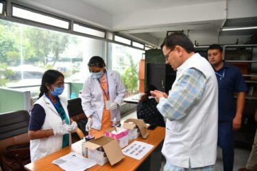 देहरादून। मुख्यमंत्री पुष्कर सिंह धामी ने बुधवार को सचिवालय में चल रहे कोविड टीकाकरण कैम्प का निरीक्षण किया। मुख्यमंत्री ने इस अवसर पर कोविड टीकाकरण अभियान से जुड़े स्वास्थ्य कार्मिकों का उत्साह वर्धन किया। उन्होंने कोविड टीकाकरण के लिए आए लोगों से बातचीत भी की। सचिवालय में कोविड टीकाकरण अभियान के तहत बूस्टर डोज लगाई जा रही है। इस अवसर पर अपर मुख्य सचिव राधा रतूड़ी भी उपस्थित रहीं।