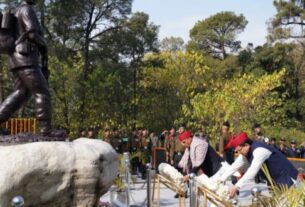 देहरादून। मुख्यमंत्री पुष्कर सिंह धामी ने मसूरी में शहीद स्मारक पर पुष्पचक्र अर्पित कर शहीद राज्य आन्दोलनकारियों को श्रद्धांजलि दी। इस अवसर पर मुख्यमंत्री ने मसूरी में शहीद हुए राज्य आन्दोलनकारियों के परिवारजनों को सम्मानित भी किया। उन्होंने कहा कि राज्य आन्दोलनकारियों के बलिदान के कारण ही हमें उत्तराखण्ड राज्य मिला। उत्तराखण्ड राज्य आन्दोनकारियों ने जिस उद्देश्य से अलग राज्य की मांग की थी, उसके अनुरूप ही राज्य को आगे बढ़ाने के लिए सरकार प्रयासरत है। उन्होंने कहा कि उत्तराखण्ड को देश के अग्रणी राज्य बनाने के लिए 10 साल का रोडमैप तैयार किया जा रहा है। 2025 में उत्तराखण्ड राज्य स्थापना की रजत जयंती मनायेगा, तब तक सभी विभागों को लक्ष्य दिया गया है।