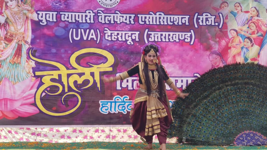 वृंदावन से आए कलाकारों ने भगवान श्री कृष्ण की मयूर रासलीला मटकी कार्यक्रम के साथ भगवान शिव की मसाने की होली का चित्रण दिखाया।