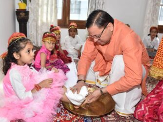 देहरादून। मुख्यमंत्री पुष्कर सिंह धामी ने मंगलवार को शारदीय नवरात्र की नवमी के पावन अवसर पर मुख्यमंत्री आवास में विधि विधान से कन्या पूजन किया। उन्होंने नौ दुर्गा की प्रतीक नौ कन्याओं को भोजन कराया। मुख्यमंत्री ने निर्मल बुद्धि एवं अष्ट सिद्धियों की प्रदाता माँ सिद्धिदात्री से प्रदेश एवं प्रदेशवासियों की सुख समृद्धि की कामना भी की।